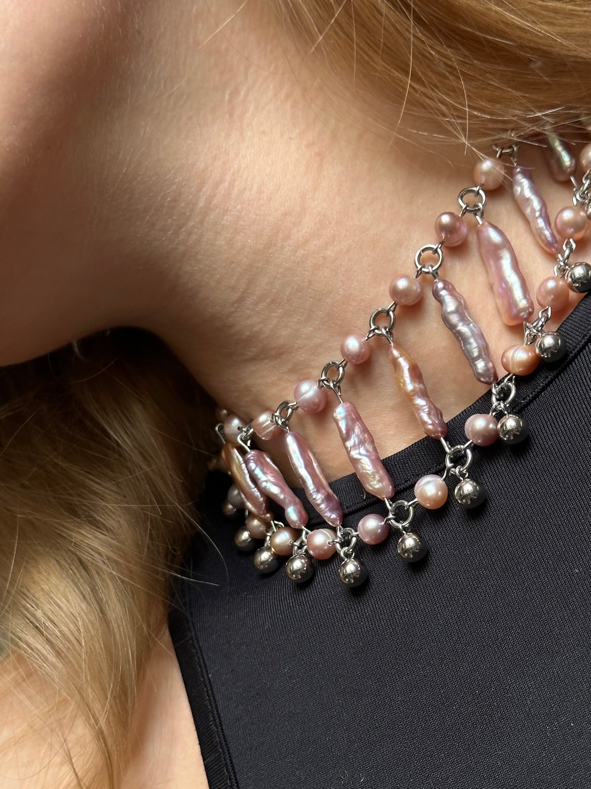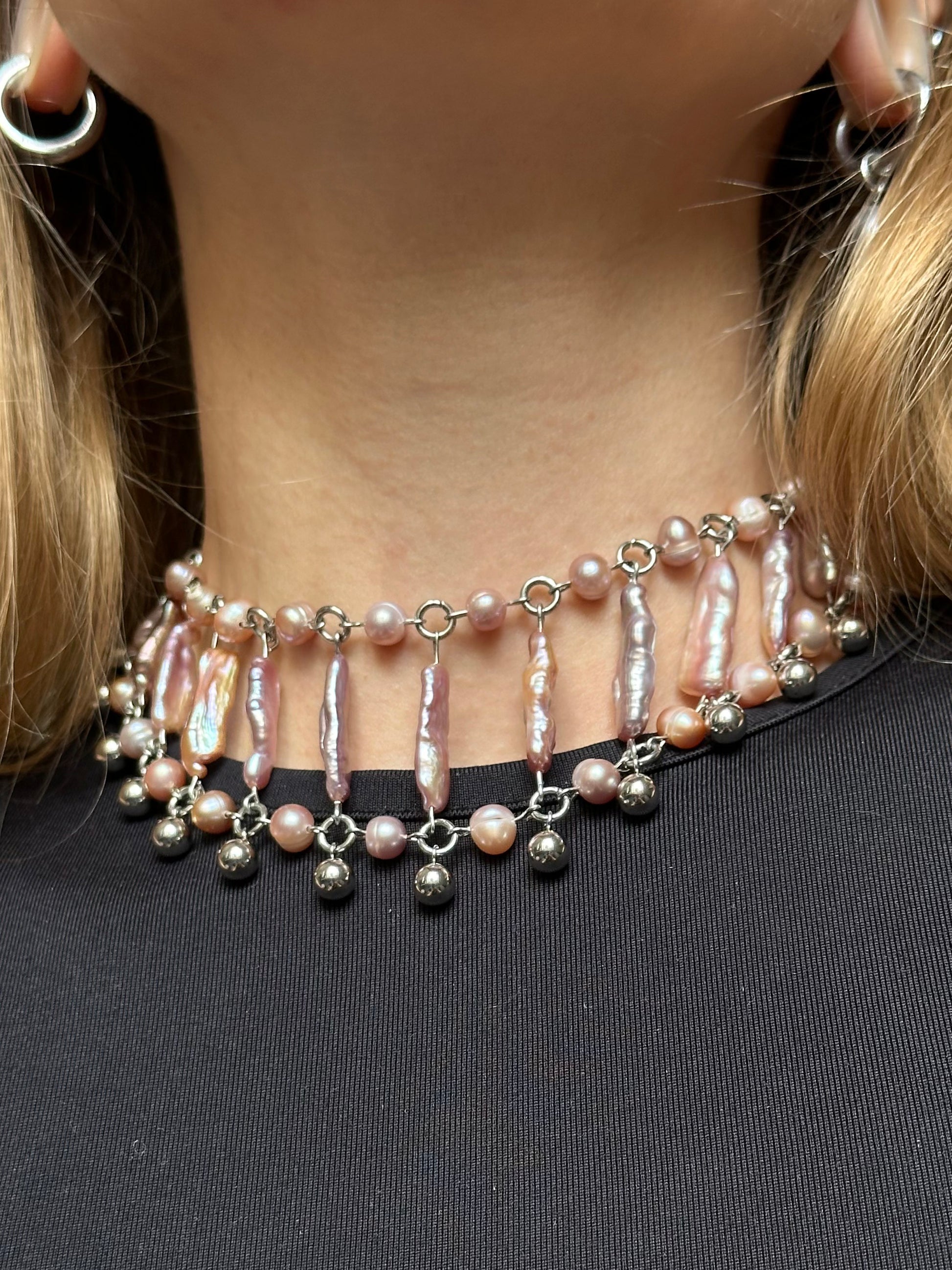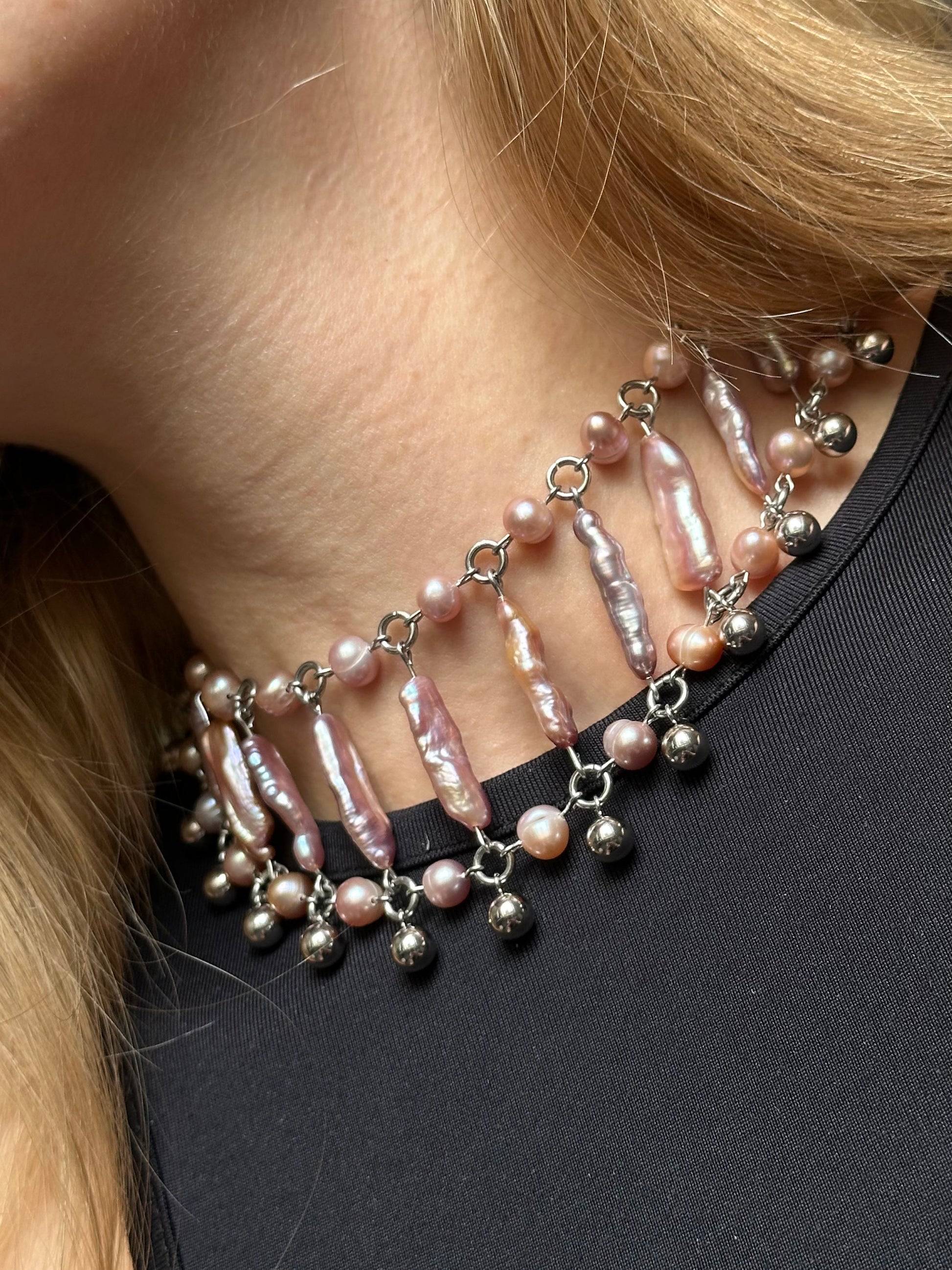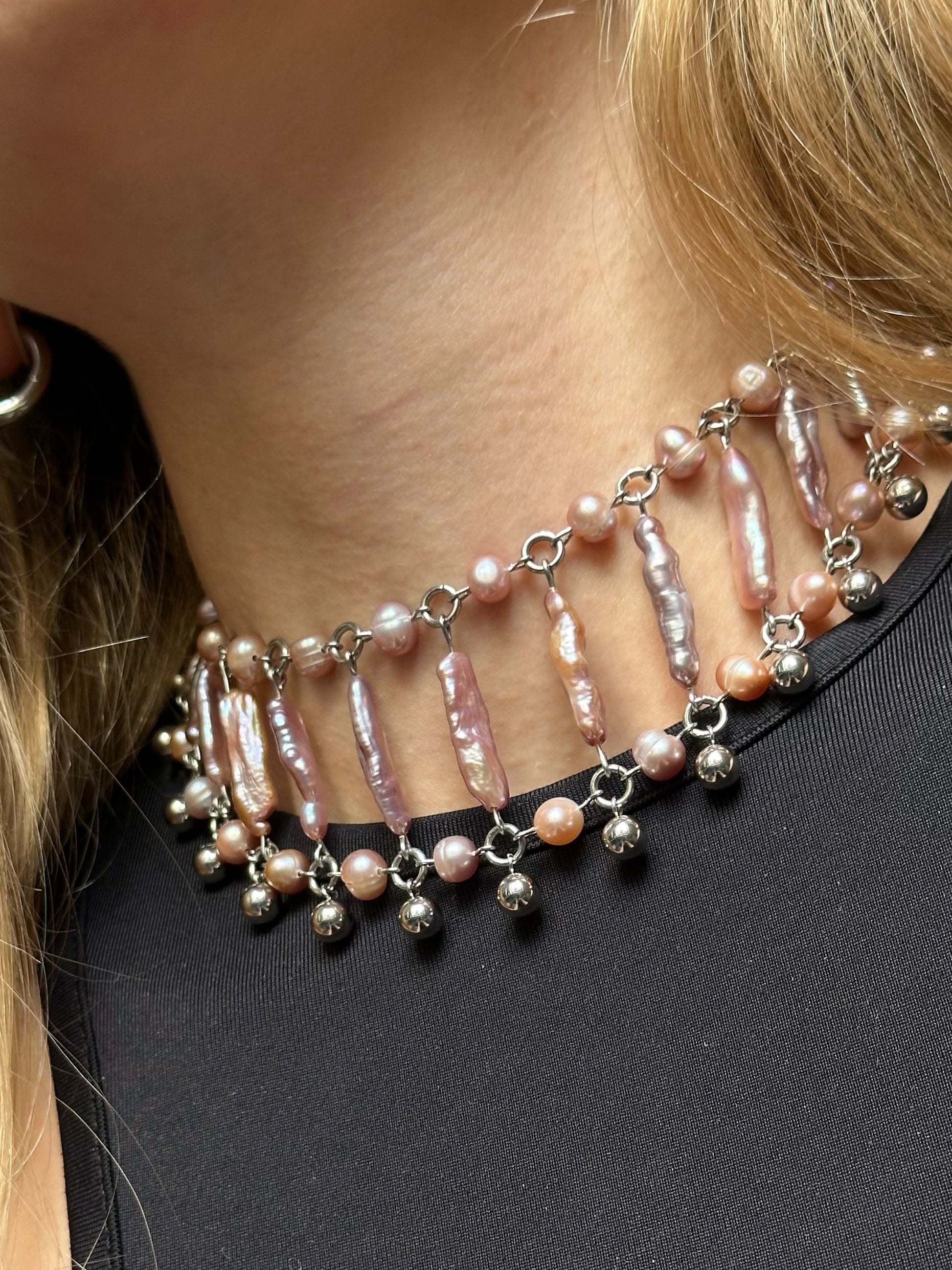 Materialien: Edelstahl, schwarze Süßwasserperlen