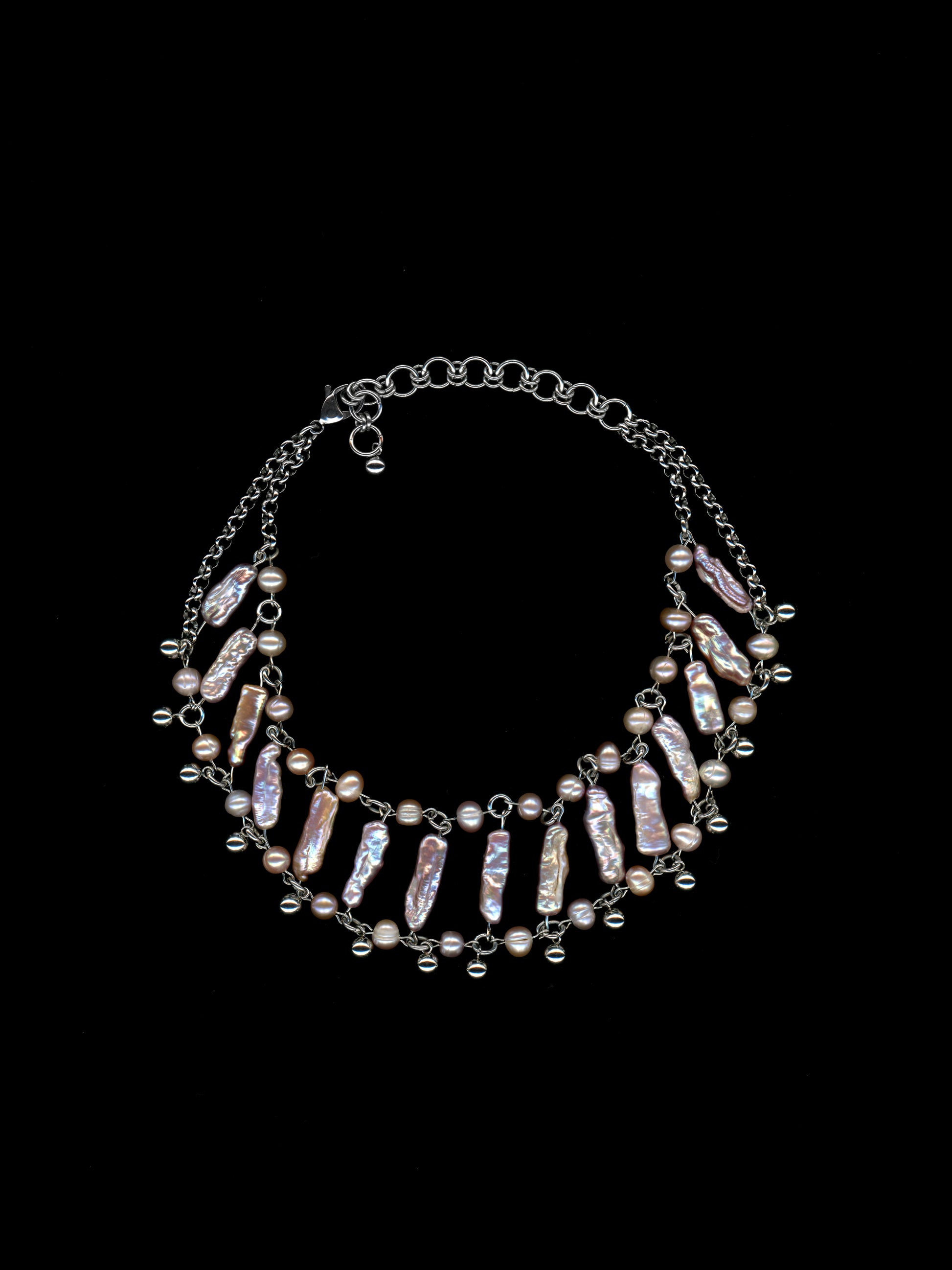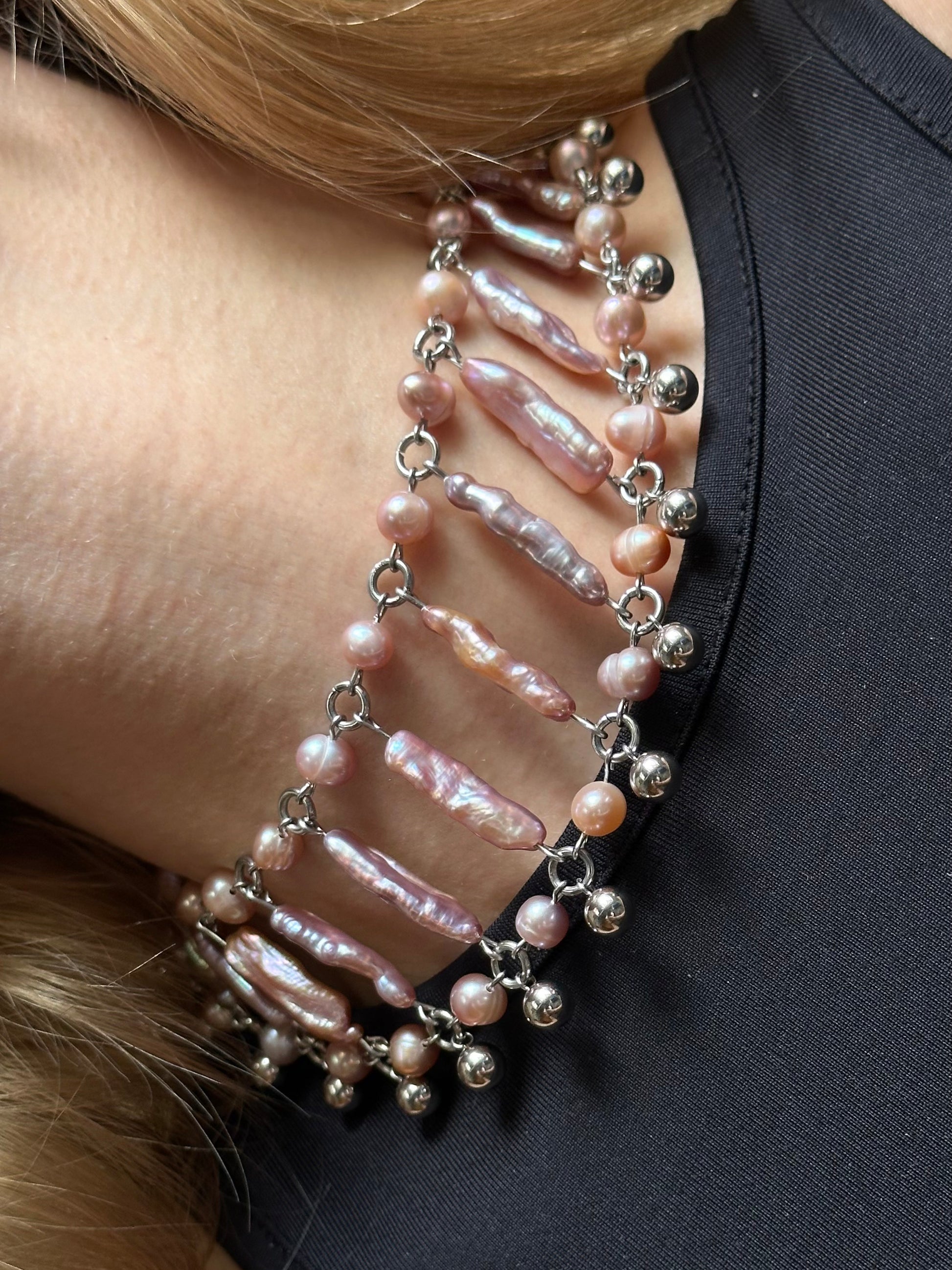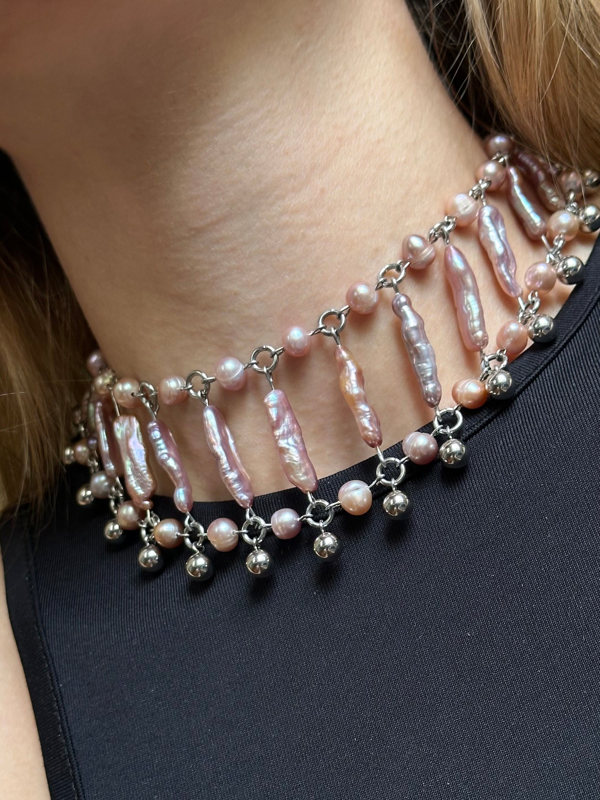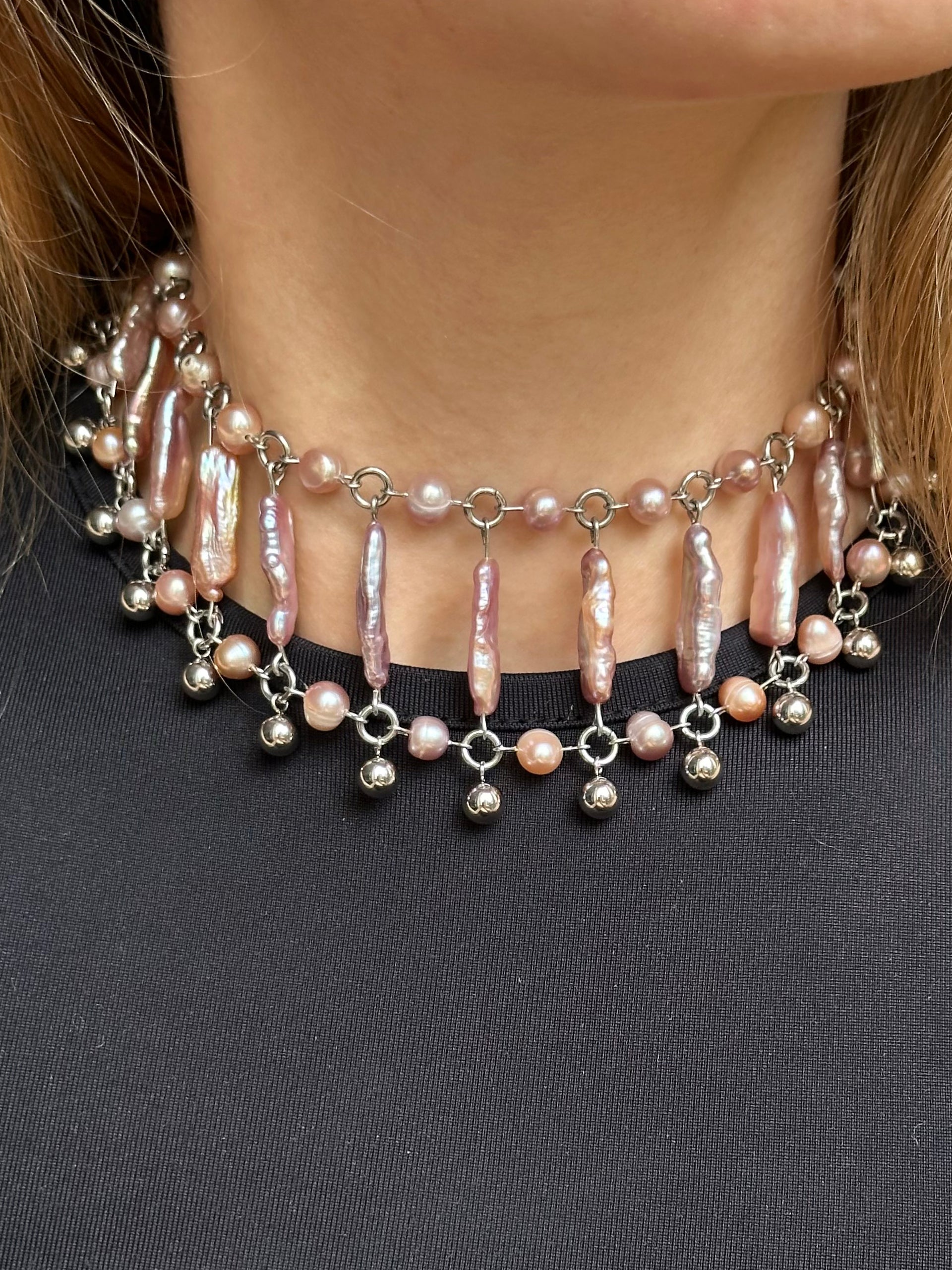 Materialien: Edelstahl, schwarze Süßwasserperlen