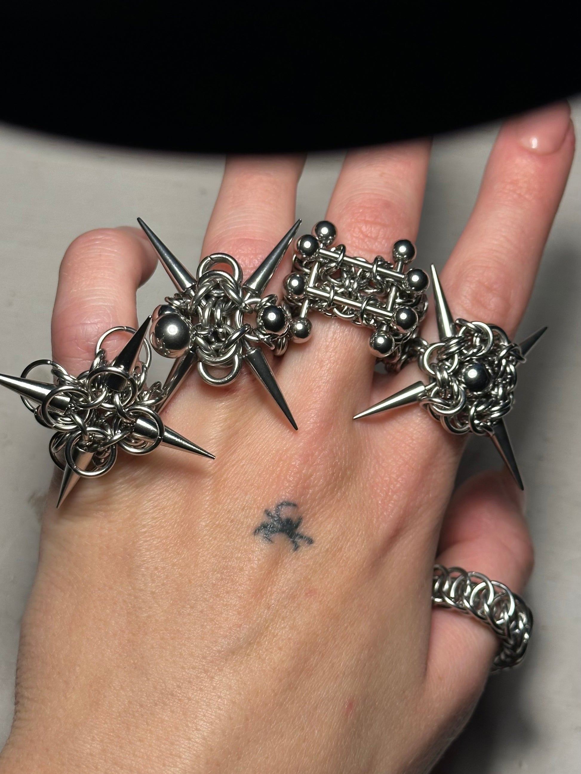 Due to the nature of chainmail construction, exact sizing isn’t possible — instead, our rings follow a general XS–XXL range (with approximate translation to universal ring sizes).