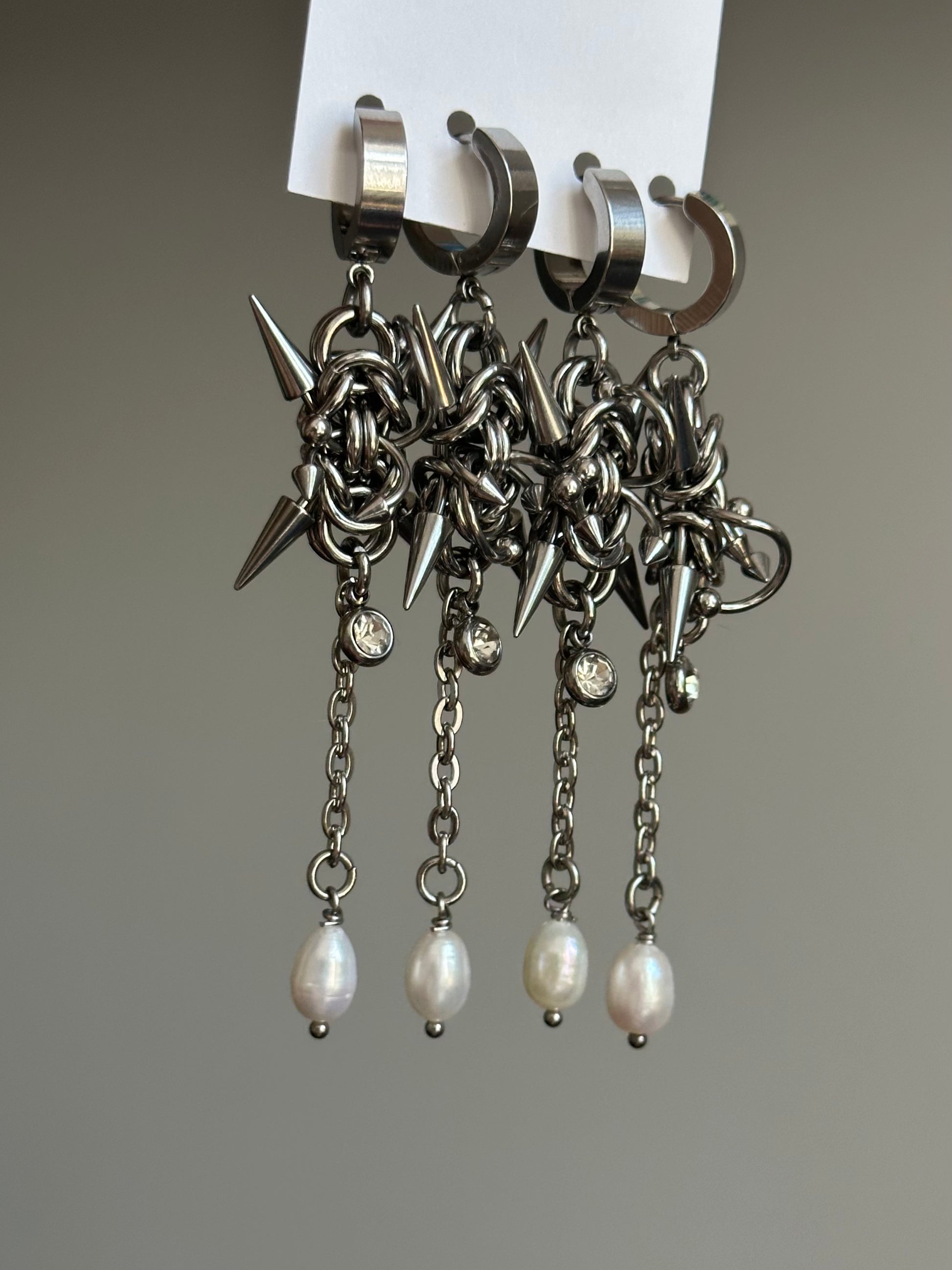 materials: stainless steel, white freshwater pearls, zircons